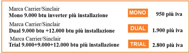 Fornitura ed installazione dual split a partire da € 1.900,00 +iva