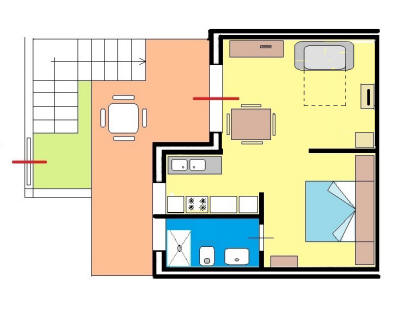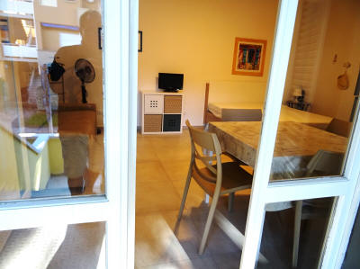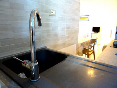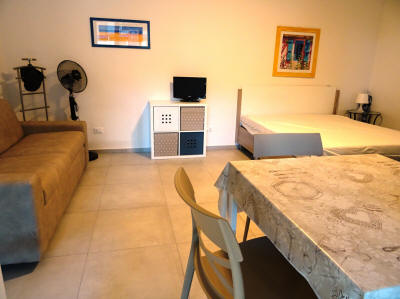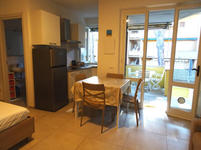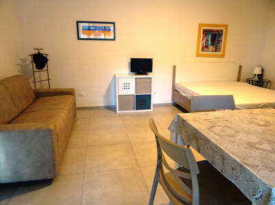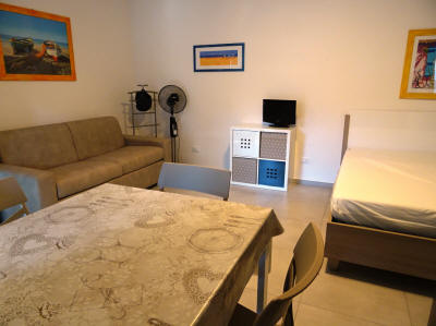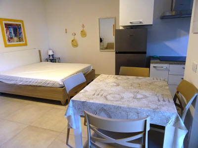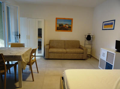 Ampio MONO-BILOCALE con ingresso indipendente al piano rialzato di palazzina, rifatto completamente nuovo e ben arredato, composto da soggiorno angolo cottura, divano letto matrimoniale, camera matrimoniale e bagno con box doccia, oltre a ampio terrazzo pranzo per 3/4 persone,