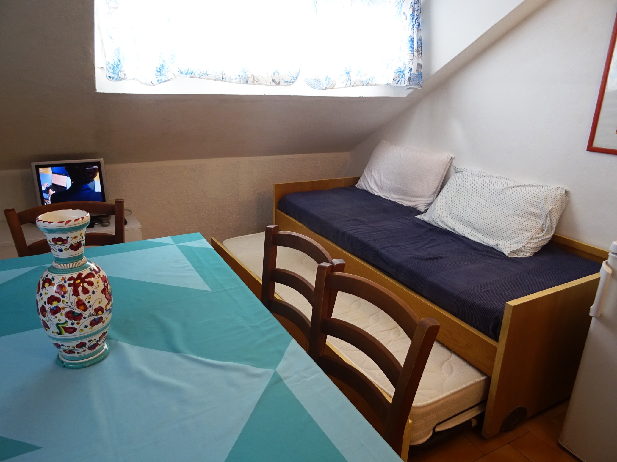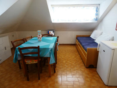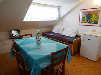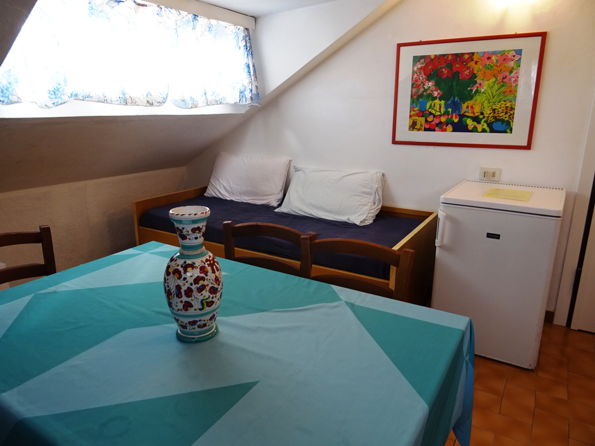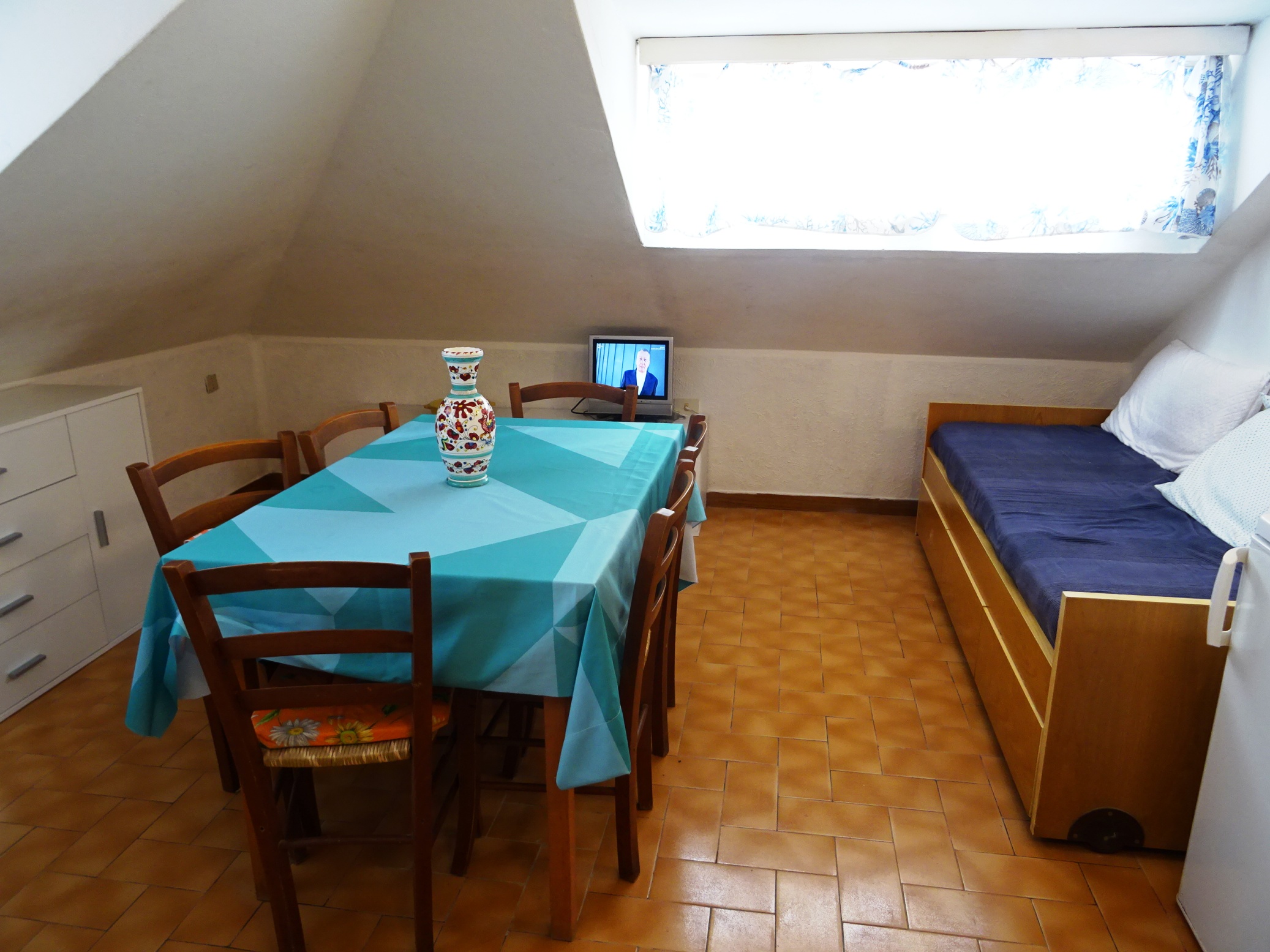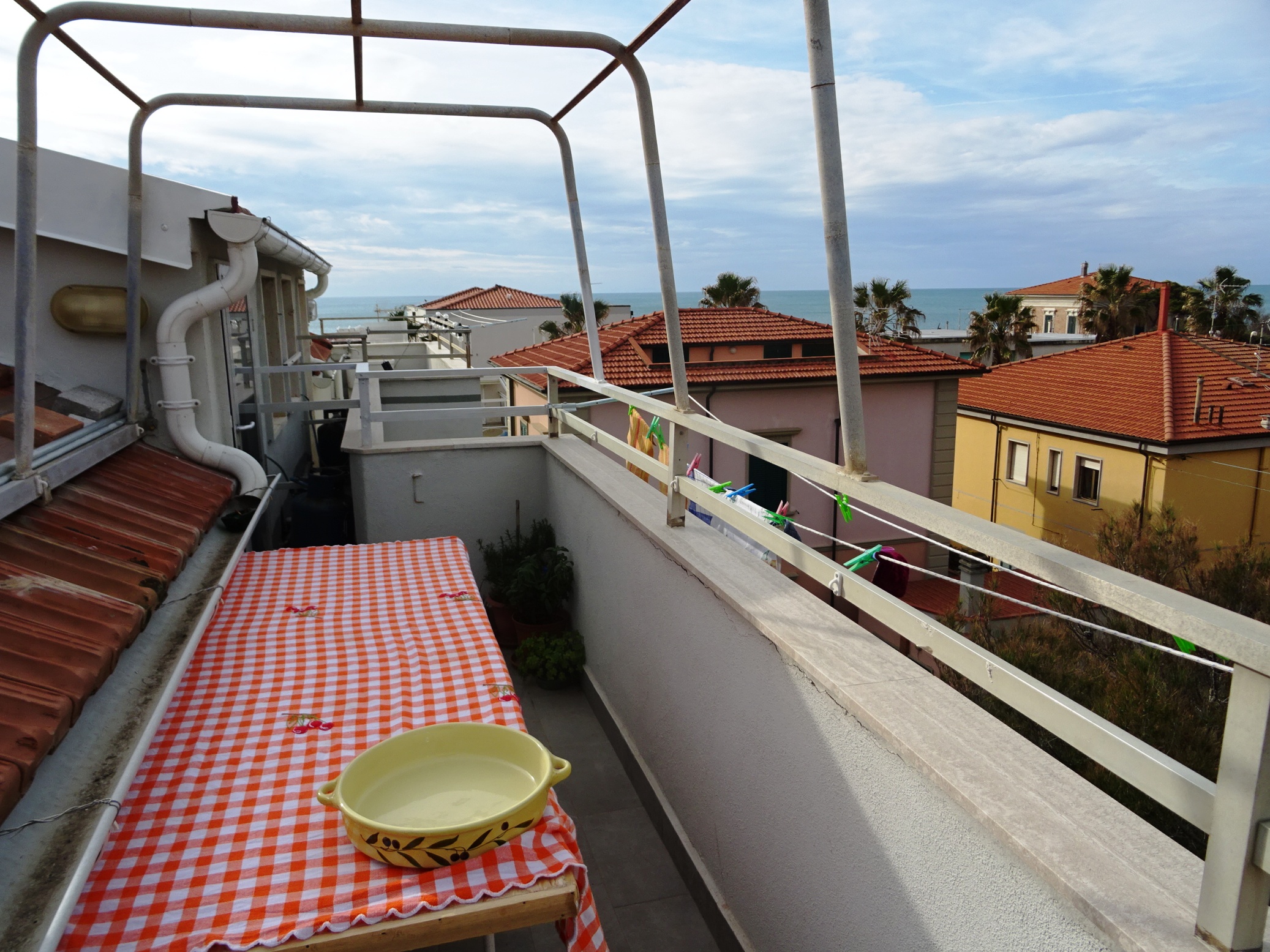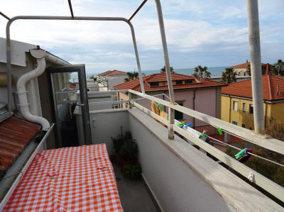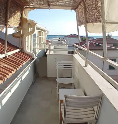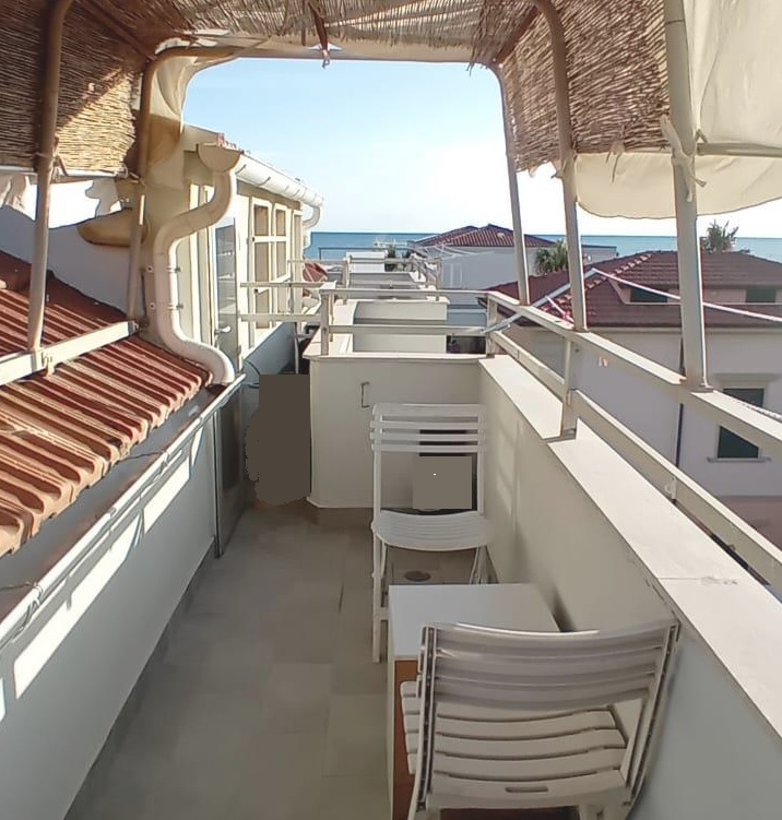 MANSARDA BILOCALE 50 mt dal mare in palazzina vista mare, ben arredato, con aria condizionata , composto da soggiorno pranzo con cucinotto, camera matrimoniale e bagno nuovo, oltre a terrazzo
