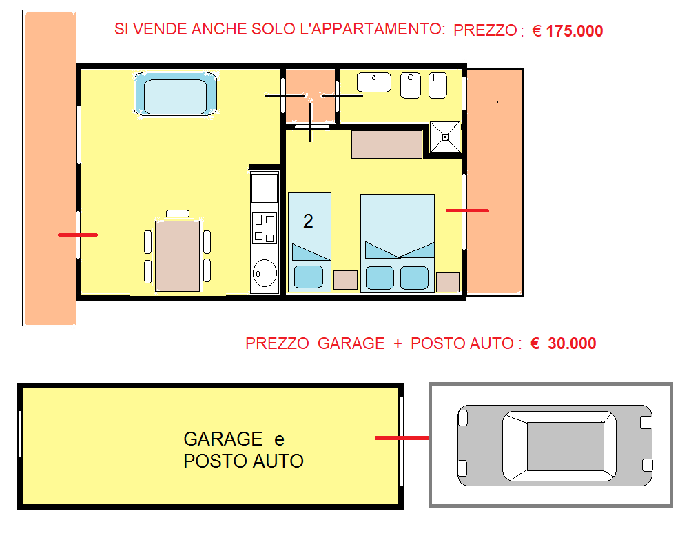 199 APPART solo = € 175000 GARAGE +park= € 30000 |