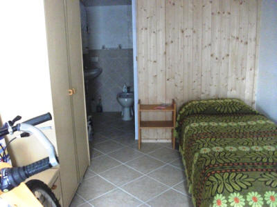 Trilocale al piano secondo in zona tranquilla composto da ampio soggiorno con cucinotto e balcone, due camere matrimoniali di cui una con letto singolo aggiunto e bagno con box doccia. Completa la proprietà giardinetto e tavernetta con posto letto e bagno. |