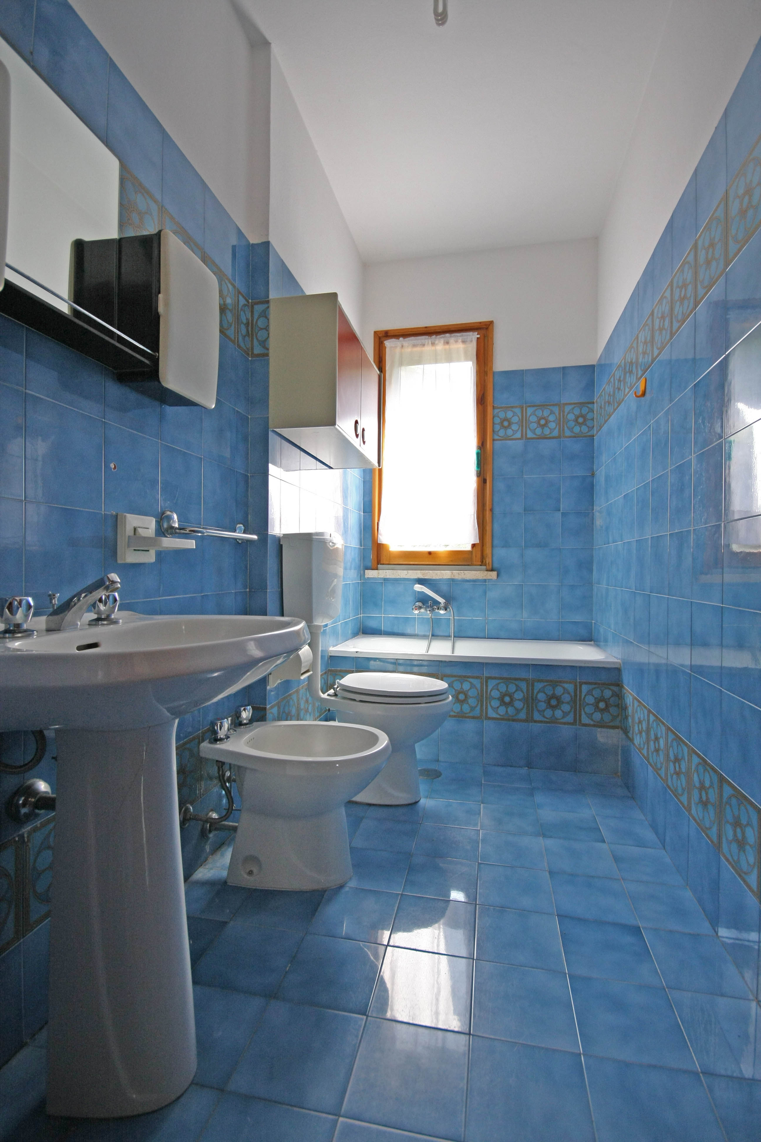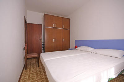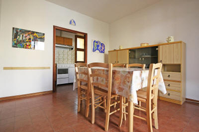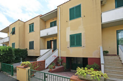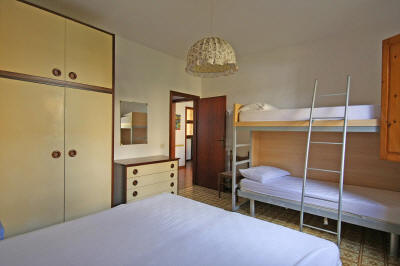 Appartamento trilocale ben tenuto al piano terra rialzato in zona tranquilla composto da soggiorno con cucinotto e balcone, camera matrimoniale con letto a castello, altra camera matrimoniale e bagno con mezza vasca.