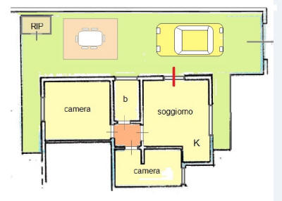 Bel trilocale al piano terra con aria condizionata, composto da soggiorno con divano letto, cucinotto, una camera matrimoniale con letto matrimoniale e due letti a castello, cameretta con due letti singoli, bagno con box doccia ed ampia corte attrezzata con tenda tavolo e sedie. <posto auto nella corte esclusiva. Aria condizionata in camera