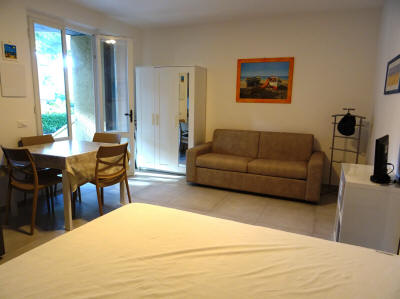 Ampio MONO-BILOCALE con ingresso indipendente al piano rialzato di palazzina, rifatto completamente nuovo e ben arredato, composto da soggiorno angolo cottura, divano letto matrimoniale, camera matrimoniale e bagno con box doccia, oltre a ampio terrazzo pranzo per 3/4 persone,