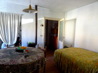 BILOCALE al piano primo, da ristrutturare, composto da ingresso, cucinotto, soggiorno pranzo, camera e bagno, oltre a porzione di corte retrostante per un posto auto esclusivo e ripostiglio.