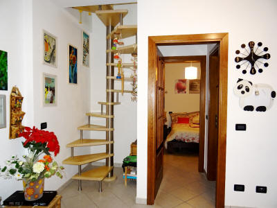 Bel bilocale seminuovo al primo piano, posizione centrale. L'appartamento è composto da soggiorno con angolo cottura., terrazzo, camera con letto matrimoniale e letto singolo. Bagno con box doccia. Ampia MANSARDA con grande terrazza vista panoramica. Termoautonomo a termosifoni.