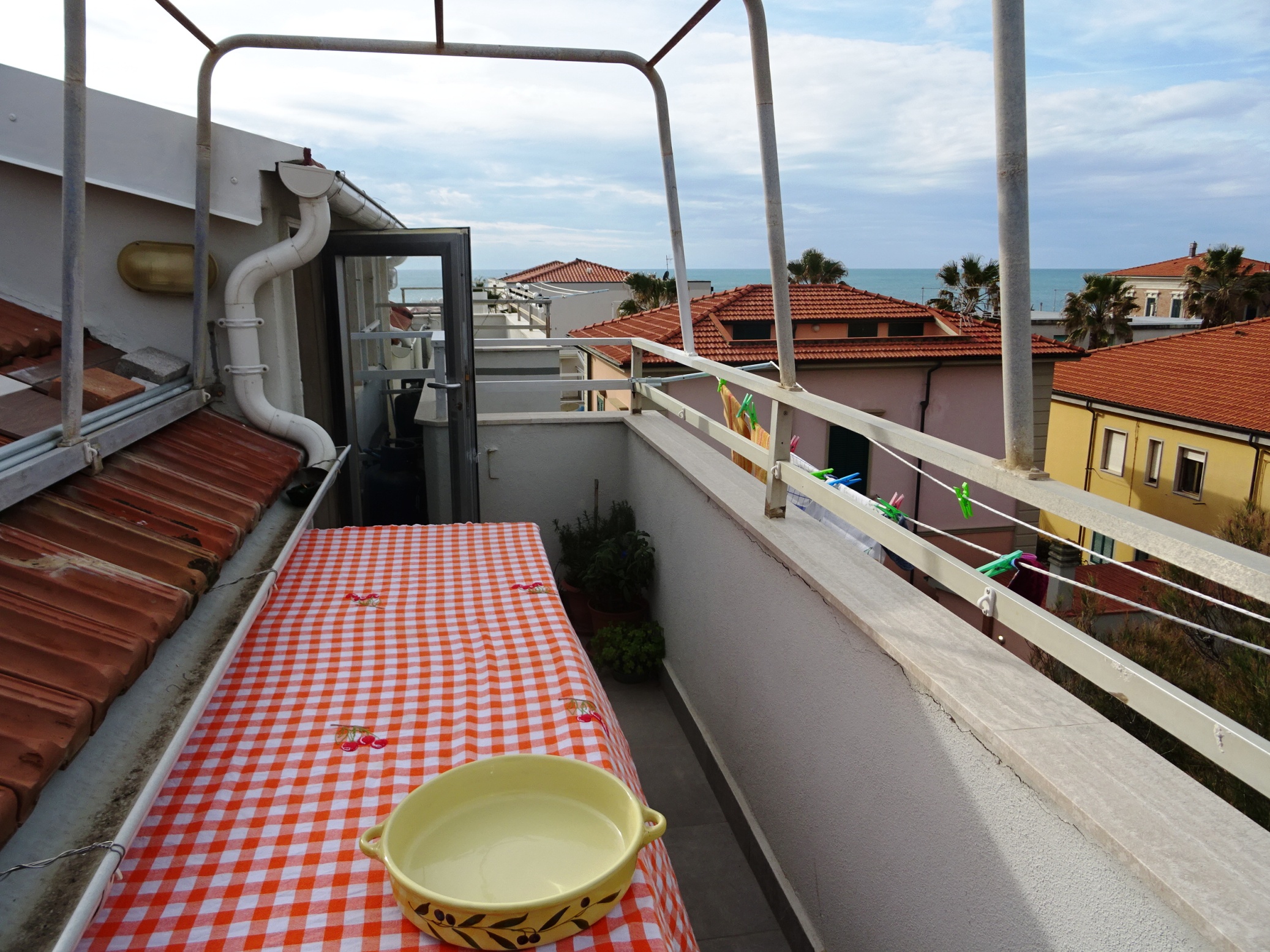 MANSARDA BILOCALE 50 mt dal mare in palazzina vista mare, ben arredato, con aria condizionata , composto da soggiorno pranzo con cucinotto, camera matrimoniale e bagno nuovo, oltre a terrazzo