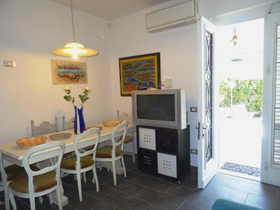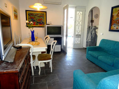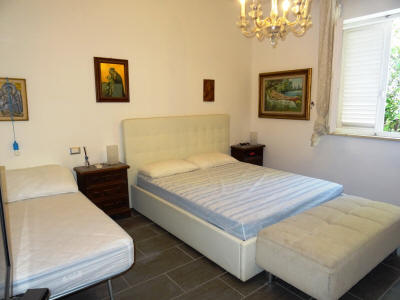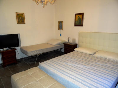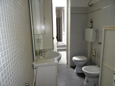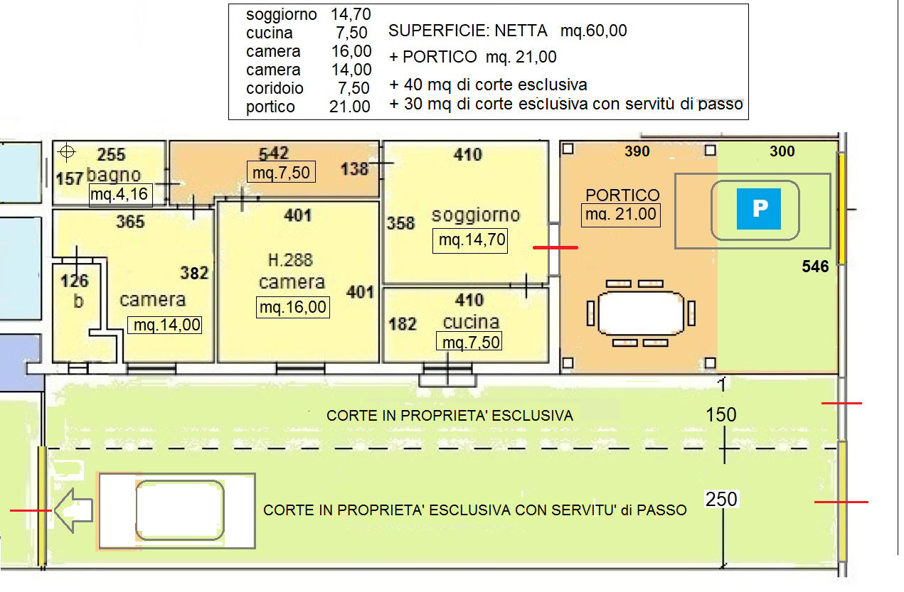 Ampio TRILOCALE in palazzina bifamigliare, con ingresso indipendente al piano terra, composto da soggiorno pranzo con cucinotto, camera matrimoniale, bagno con aspiratore senza apertura all'esterno, se necessario alla pratica di frazionamento, oppure con porta finestra come adesso e con metà chiostra in base alla scelta tecnica che sarà necessaria per la pratica di frazionamento ed in base alle normative vigenti, ed altra camera doppia con altro bagno, porzione di corte antistante e laterale, oltre ad ampio portico. Posto auto che potrà essere ricavato all'interno sotto il portico con ingresso da cancello carrabile da realizzare a cura e spese della parte acquirente.