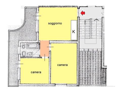 Bel TRILOCALE, con bel TERRAZZO ed ampia corte condominiale, composto da ingresso soggiorno angolo cottura, due camere, bagno e TERRAZZO. Aria condizionata.